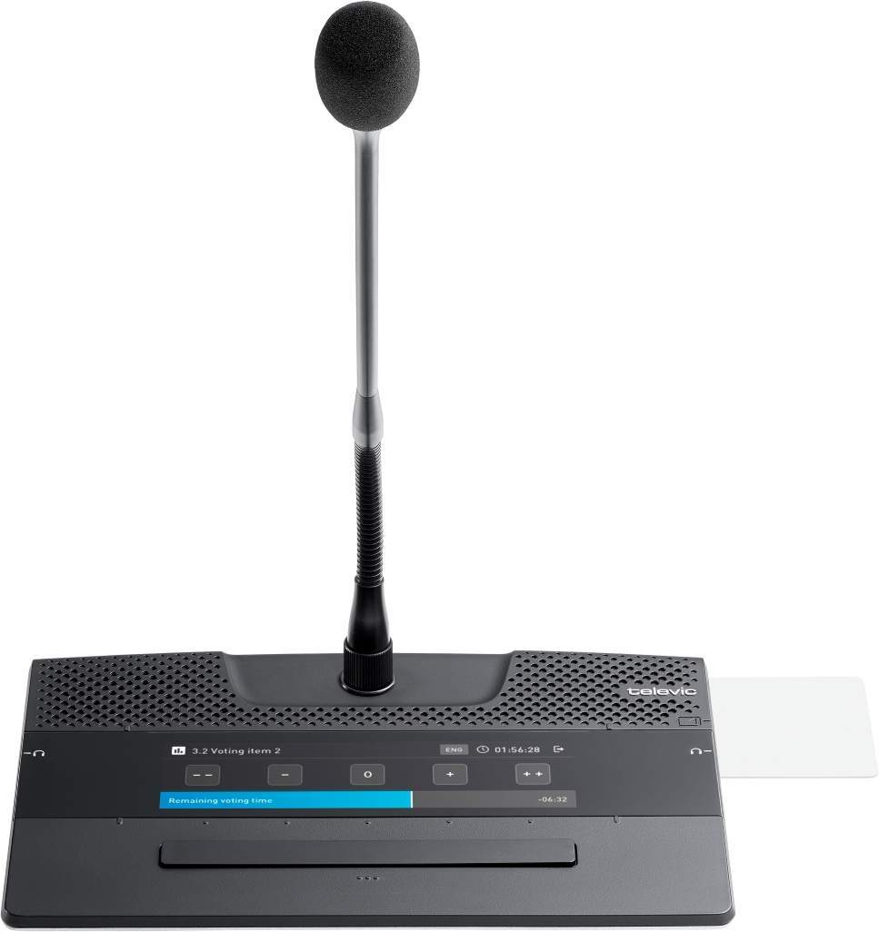 Televic Confidea FLEX Mike (71.98.0133) — это настольный пульт председателя/делегата (универсальное устройство) с интегрированным сенсорным экраном 5,2″. Устройство отличается тонким, современным и ненавязчивым дизайном, предлагая при этом расширенный функционал и простоту использования. Микрофон заказывается отдельно.