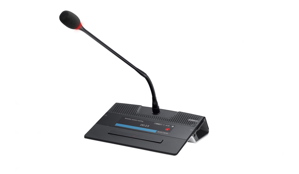 - Адаптивный интерфейс, предоставляет различные кнопки управления, когда устройство настроено как председатель, делегат или при двойном использовании устройства