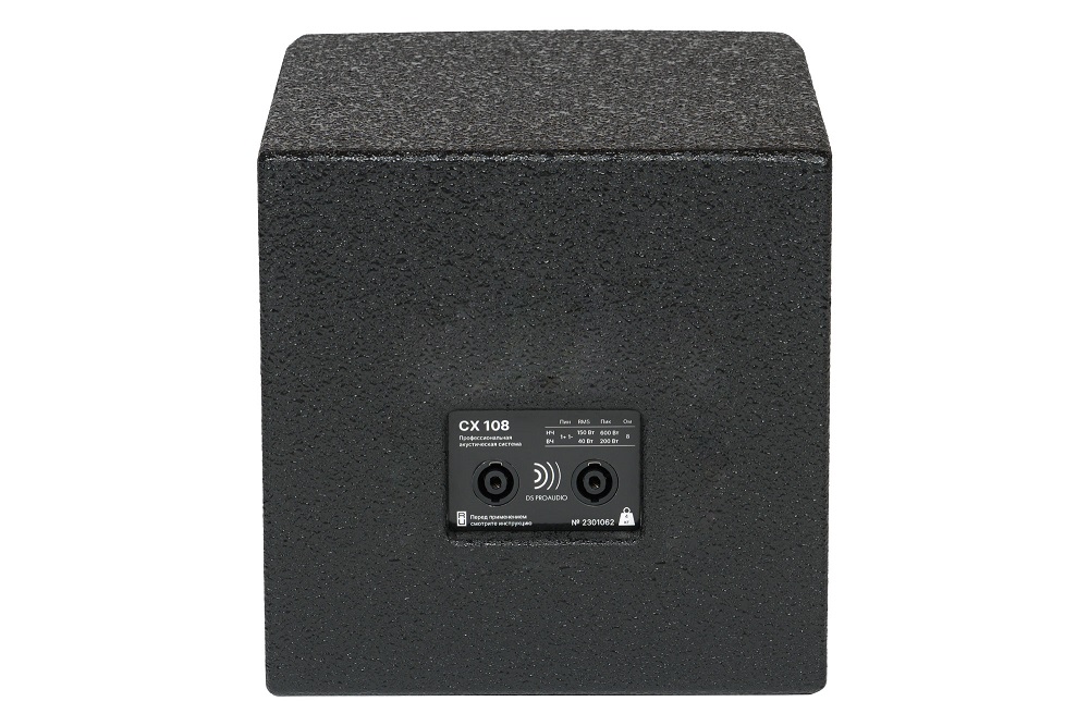 DS Proaudio CX 108 ─ пассивная 2-х полосная коаксиальная акустическая система (8”+1”), 440/1800 Вт, 8 Ом, угол раскрытия 90°х 90°, частотный диапазон 150-20000 Гц (+/-3 дБ) , звуковое давление продолжительное/пиковое 122/128 дБ, 9 кг
