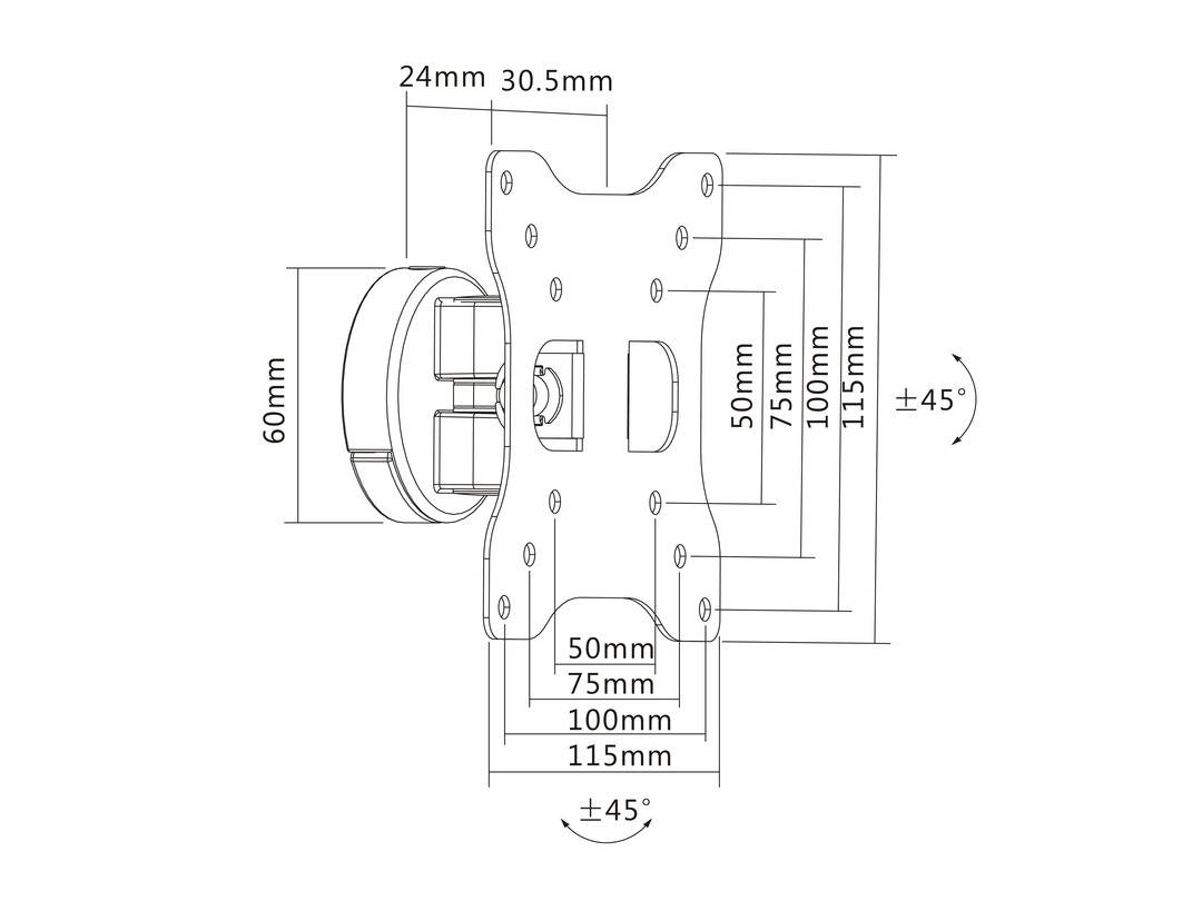 - Поддержка дисплеев диагональю от 9″ до 32″, весом до 15 кг